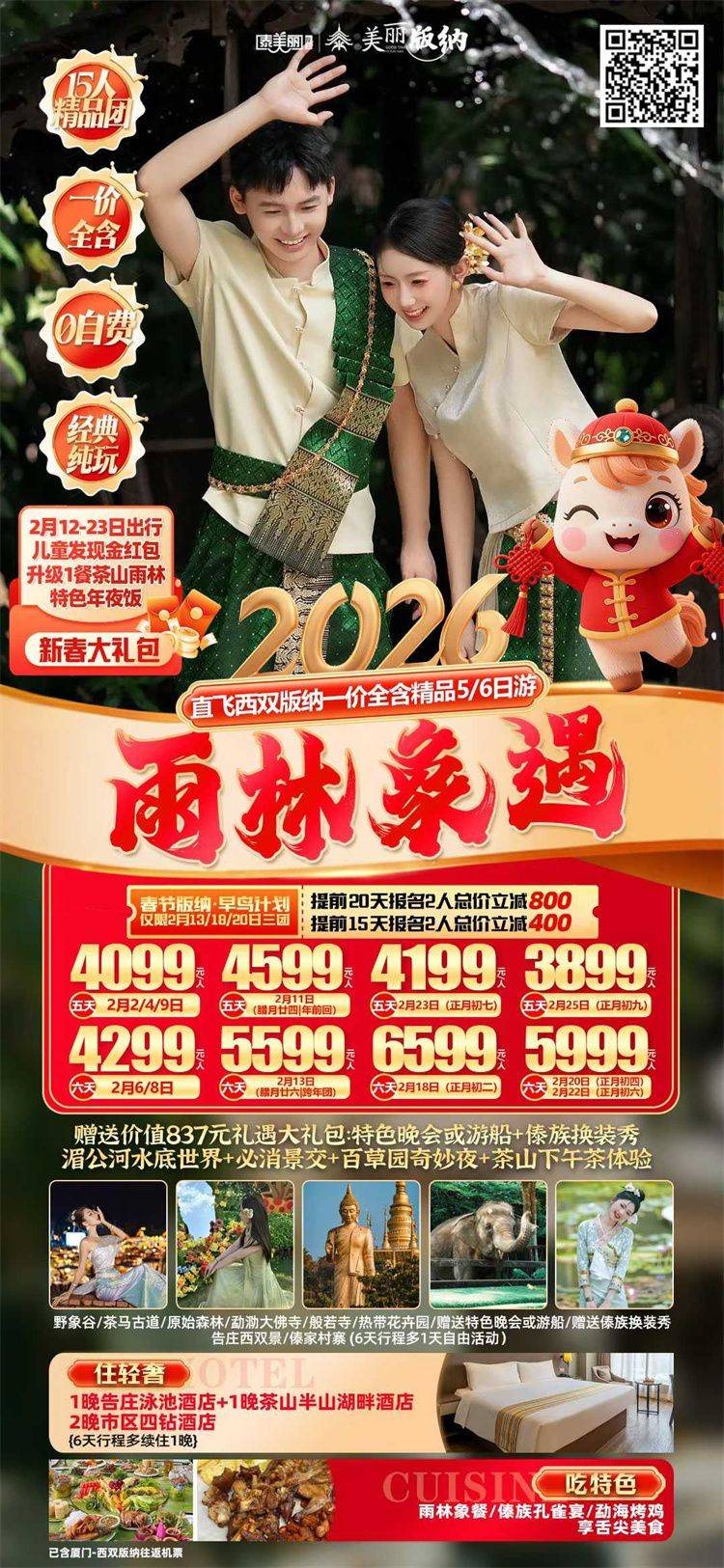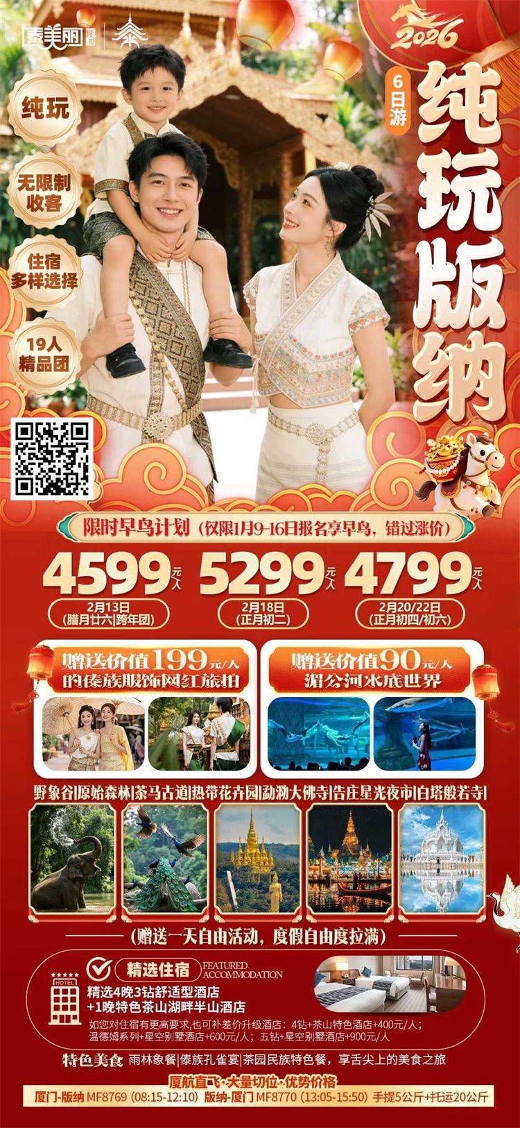 •儿童价标准:年龄2~12周岁(不含),不占床不含早、行程中标注所含内所含内容为准。儿童若占床,请联系客服补齐房费。
