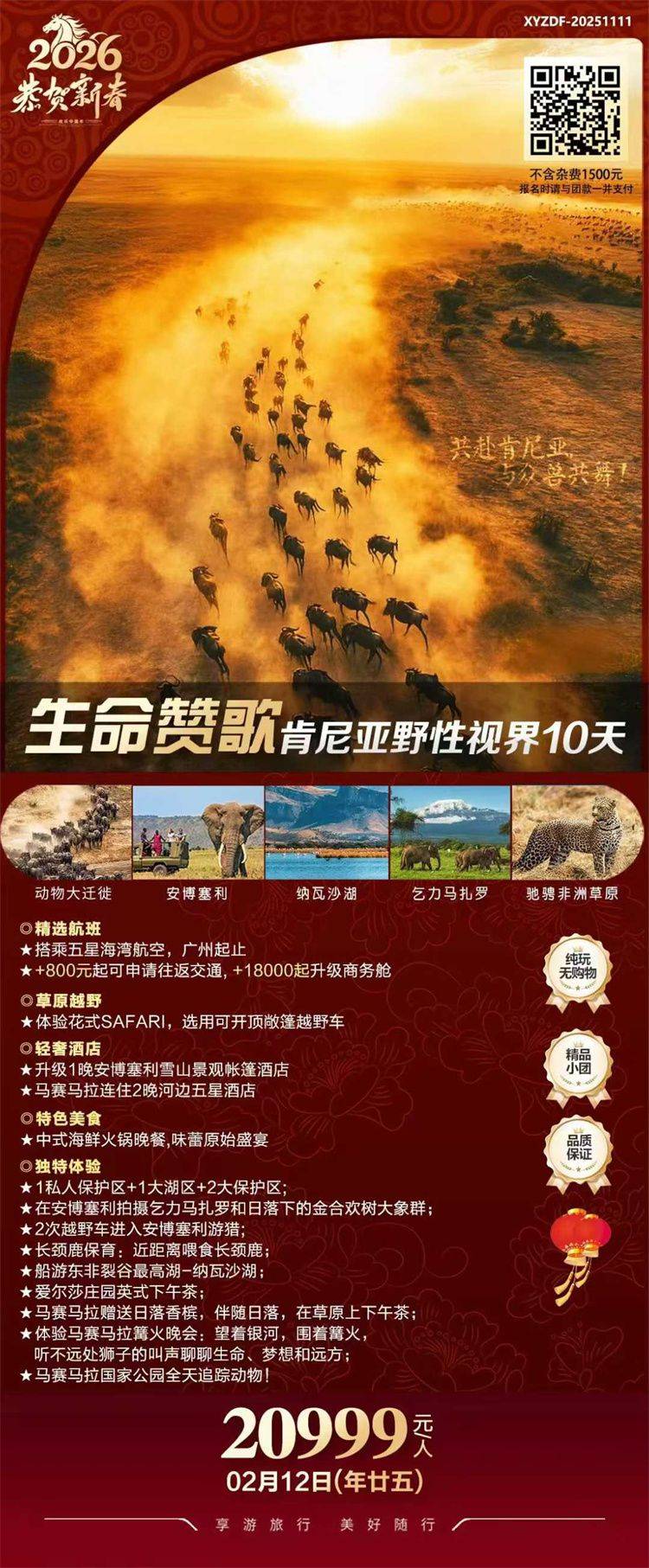 ★出团通知:出团通知最晚于出团前 1 天发送,若能提前确定,我们将会第一时间通知您。若发团人数不足或不可抗力因素导致无法出行,我们将在出行前 3 个工作日通知取消该行程,您可以选择延期出行或更改线路出行或取消退团。