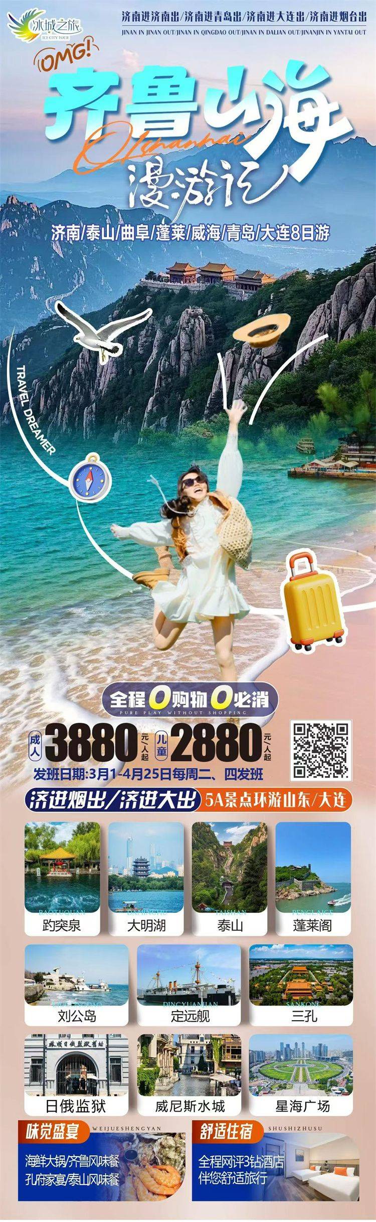 (1)景点游览、自由活动、购物店停留的时间以当天实际游览为准。