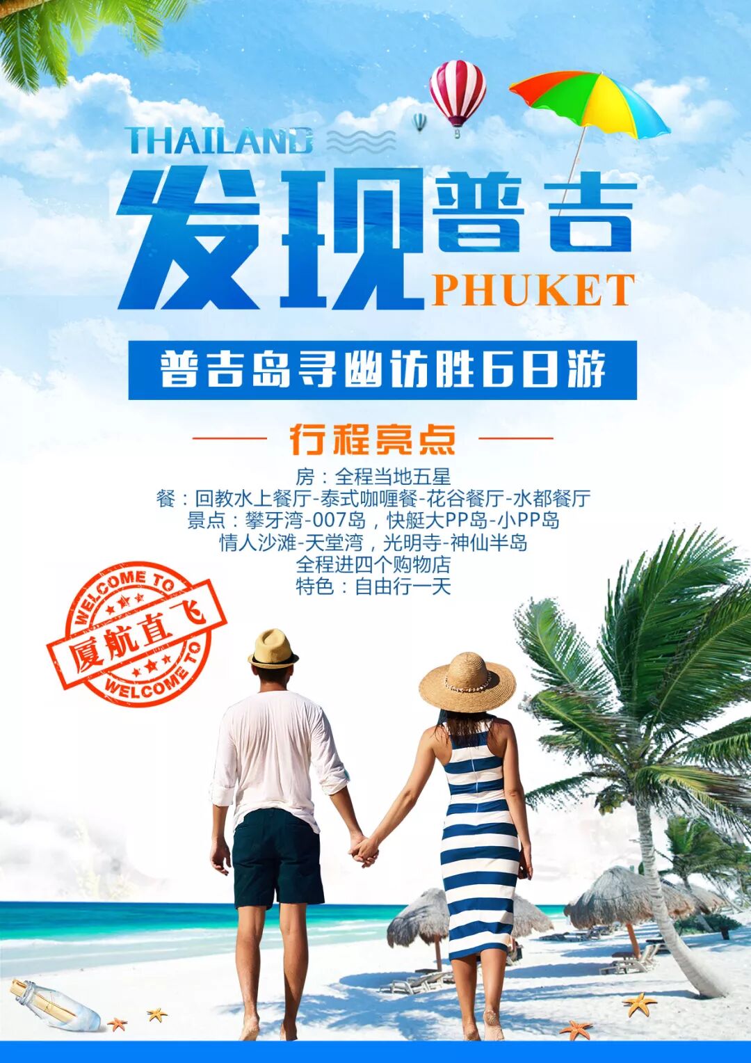 交通标准: 厦门-曼谷—普吉往返机票、税金、燃油附加费,全程旅游观光巴士