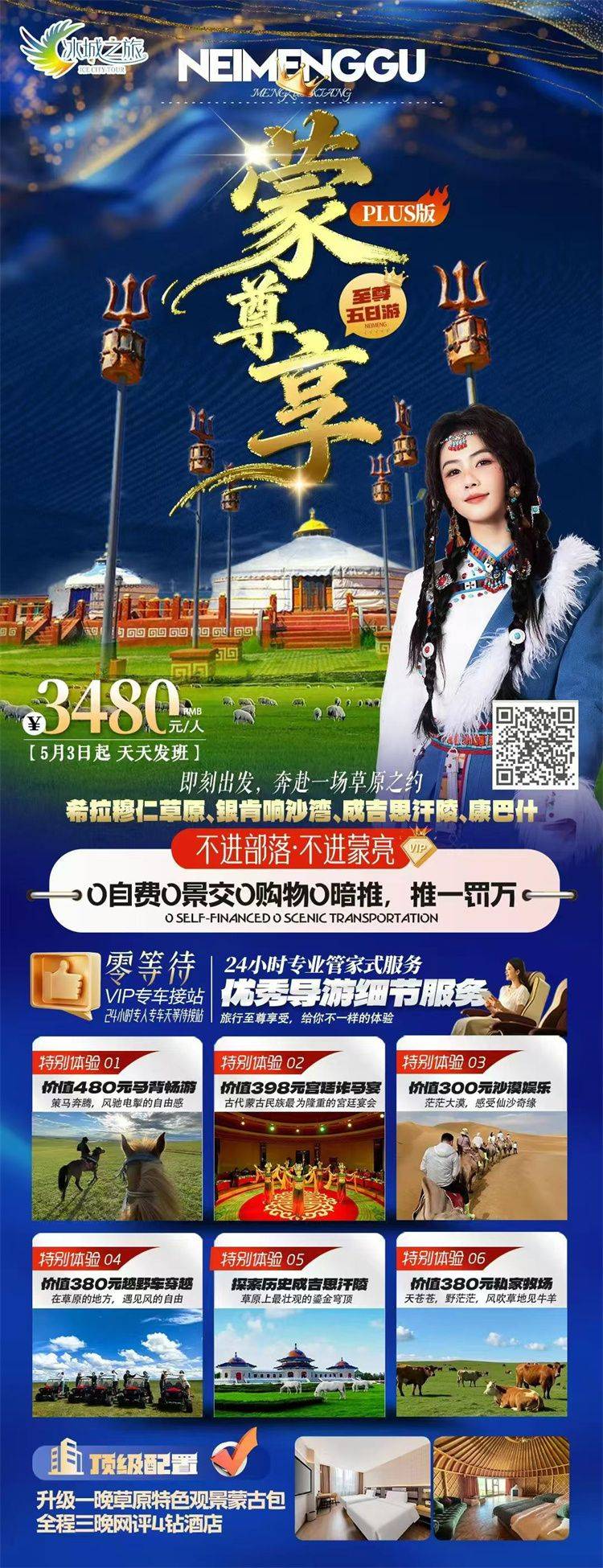 ★因旅游受各方面因素影响较大,线路时常变化,业务咨询量很大,网上的线路内容和价格不能及时更新请游客谅解,届时您可随时来电咨询最新价格和线路内容。