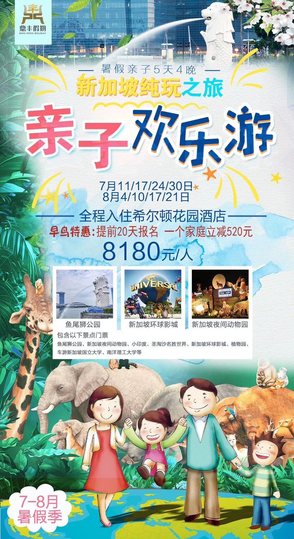 06. 12周岁以下小孩不占床减1100元/人,12周岁-17周岁(包含12周岁)小孩必须占床与成人同价。(此报价仅适用于以上行程以上日期, 报价不适用于新加坡展会期间及法定节假日)