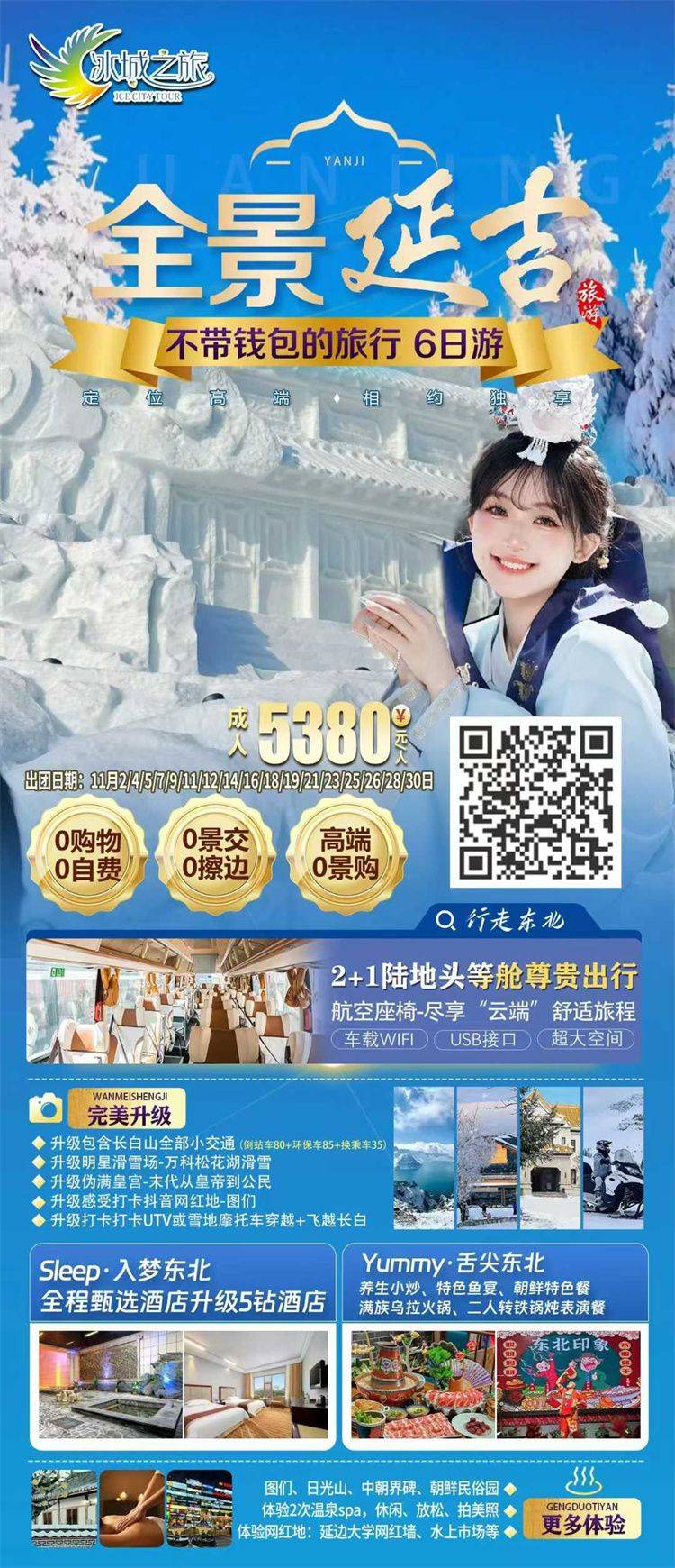•门 票:行程中注明需要另行支付的自费景点或导游推荐自费项目(无强制消费)。